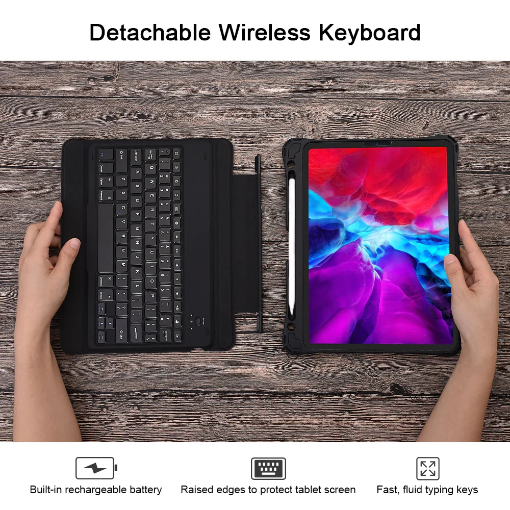 Detachable Wireless Keyboard: Turns your iPad into a laptop, offering you a cozy experience