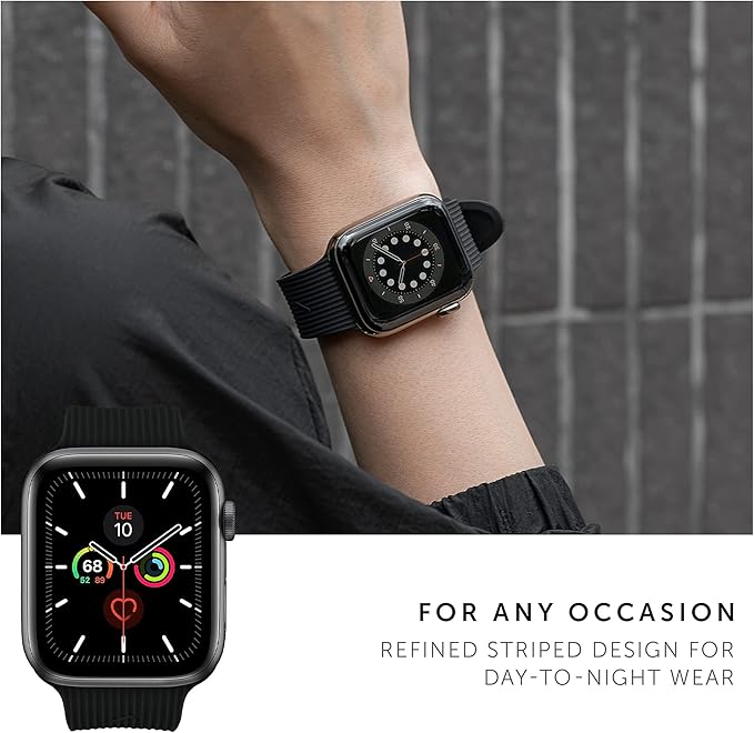 - A VERSATILE STAPLE: A sleek, textured silicone strap for your Apple Watch, crafted for versatility & easy day-to-night wear. Compatible with Series 1, 2, 3, 4, 5, 6 & SE in 40/44mm