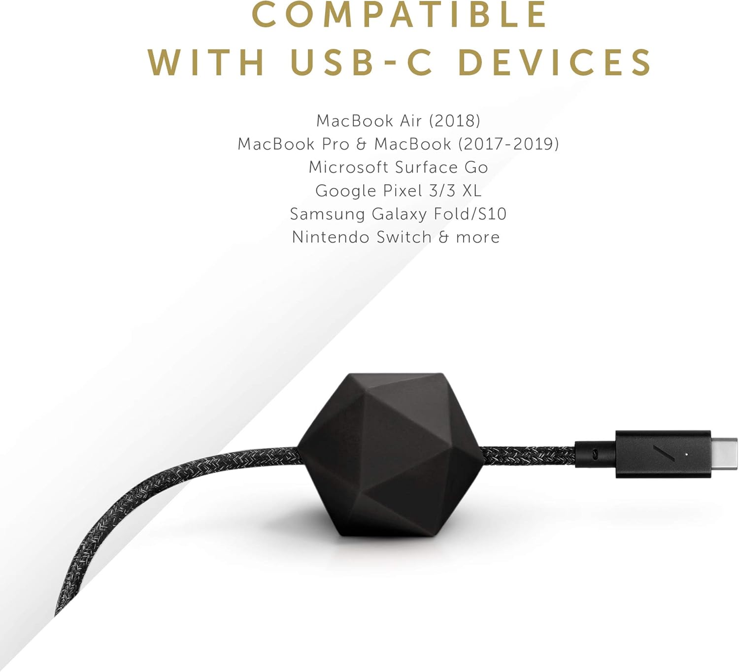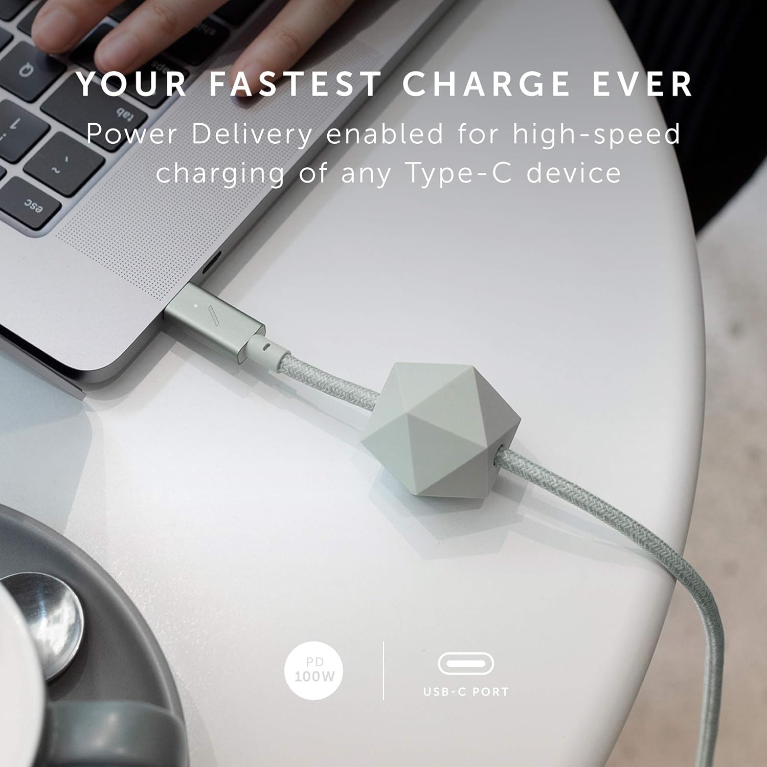 Native Union Type-C Desk Cable – USB-C to USB-C 8ft Ultra-Strong Non-Slip Charging Cable with Anchor Weight